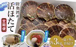 <定期便>夏と冬 旬の活ほたて 食べ比べ 各3kg【平内町漁業協同組合】 ホタテ ほたて 帆立 活ホタテ 生ほたて 貝 貝柱 殻付き ほたて広場 魚介 青森 青森県 東北 むつ湾 陸奥湾 漁協 海鮮 BBQ バーベキュー F21J-165
