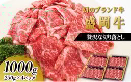 贅沢な盛岡牛の切り落し1000g(250g×4P) お肉 牛肉 旨味 赤身 やわらか あっさり オススメ 絶品 霜降り 絶妙 バランス 良質 人気 とろける 美味しい