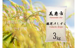 <1週間以内に発送!> 銀河のしずく 白米 3㎏ 【1094】