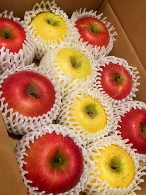 2種類の立派なりんごが入っていて、りんごの甘い香りが漂っていた。