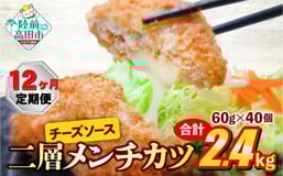 【12ヶ月定期便】とろ~り チーズ メンチカツ 60g×40個 合計2.4kg を12ヶ月お届け 【 チーズメンチカツ 国産 鶏肉 とり肉 ヘルシー お弁当 おかず 2層 メンチカツ チーズ レトルト お手軽 大容量 】 RT2442