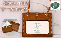 名刺入れ 付き ネームホルダー 茶 【いわてひだまり農園】/ 茶色 革 革製品 手作り 障がい者 支援 施設 手作業 レザー 牛ショルダー 牛革 おしゃれ シュリンク加工 カードケース 名札入れ 名札ケース 名札 オススメ おすすめ