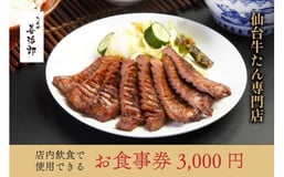 たんや善治郎 お食事券 3,000円【お食事券 仙台 牛たん レストラン グルメ チケット 地元 人気 イベント ディナー ランチ 外食 ギフト 贈り物 食事 宴会 会食 食べ歩き 和食 旅行 記念日 プレゼント 予約】