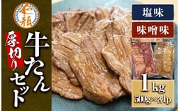 和顔 厚切り牛たんセット[塩・味噌味] 1kg(塩500g×1p・味噌500g×1p)【ふるさと納税 肉 牛肉 牛タン 仙台 名物 グルメ 厚切り プレミアム ジューシー 人気 ギフト 冷凍保存 食べ比べ 高級 贅沢】