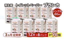 【3ヵ月 連続 定期便】トイレットペーパー ブランカ 12R シングル 60m ×8パック 96個 ×3回 日用品 消耗品 114mm 柔らかい 無香料 芯 大容量 トイレット トイレ といれっとペーパー ふるさと 納税