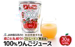 果汁100% JA秋田ふるさとストレートりんごジュース180g×30P