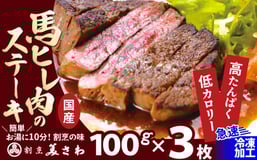 【焼成済み湯せんするだけ!】馬ヒレ肉のステーキ100g×3枚 140P2902 / 国産 ご当地 馬肉 肉 手軽 簡単 温めるだけ チョイめし おかず ごはん お取り寄せ グルメ 東北 秋田 焼き 冷凍 大館 湯せん ステーキ 馬ヒレ肉 馬ステ 東北 秋田 手軽 大館 大館市