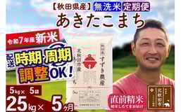 ※令和7年産 新米※《定期便5ヶ月》秋田県産 あきたこまち 25kg【無洗米】(5kg小分け袋) 2025年産 お届け時期選べる お届け周期調整可能 隔月に調整OK お米 すずき農産