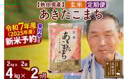 令和7年産《定期便2ヶ月》秋田県産 あきたこまち 4kg【玄米】(2kg小分け袋) 2025年産 お届け時期選べる お届け周期調整可能 隔月に調整OK お米 おおもり [おおもり 秋田 お米 あきたこまち 米どころ 東北 北秋田市 定期便 毎月お届け]