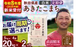 ※R8産 新米予約※ 《定期便2ヶ月》秋田県産 あきたこまち 20kg【白米】(5kg小分け袋) 2026年産 お届け周期調整可能 隔月に調整OK お米 すずき農産 [すずき農産 秋田 お米 あきたこまち 米どころ 東北 北秋田市 定期便 毎月お届け]