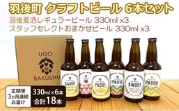 《 定期便 3ヵ月 》【限定品】羽後町産 地ビール クラフトビール 6本飲み比べセット(レギュラー×3 おまかせ×3) 羽後麦酒 お酒 詰め合わせ ギフト プレゼント 宅飲み ペールエール