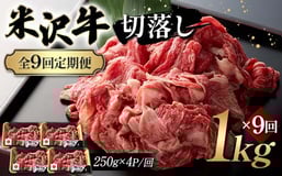 【全9回定期便】米沢牛切落し 1kg×9回 F2Y-6245