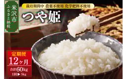 【 12ヶ月定期便 / 令和6年産 】 つや姫 5kg × 12回 計 60kg 〈 2024年 10月 ~ 2025年 9月 配送 〉 栽培期間中 農薬不使用 化学肥料不使用 ブランド米 産地直送 2024年産