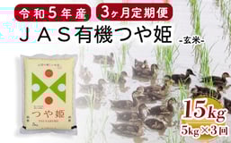 【3ヶ月定期便 / 玄米】 JAS有機 つや姫 5kg×3回 計15kg 有機肥料100% 無農薬 2023年産 農家直送 ブランド米 [065R5-004-02]