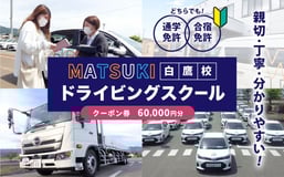 白鷹町のマツキドライビングスクールで使用できるクーポン券 (60,000円分) 自動車学校 運転免許 免許 免許証 通学免許 合宿免許 教習 クーポン券 クーポン チケット 券 割引クーポン券