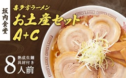 喜多方ラーメン 坂内食堂 本店 おみやげAセット(5人前 チャーシュー メンマ 付き)+Cセット(3人前) ラーメン らーめん しょうゆ セット ギフト 人気 お土産 生麺 グルメ 有名店 名店【07208-0495】