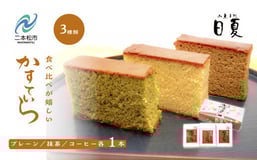 日夏のかすてら3種食べ比べセット(プレーン/抹茶/コーヒー) カステラ 和菓子 お菓子 スイーツ 食べ比べ プレーン 抹茶 コーヒー おすすめ お中元 お歳暮 ギフト 二本松市 ふくしま 福島県 送料無料【菓子処日夏】
