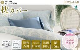 昭和西川 スヤラボ ピローケース パルミラ (ピンク・ブルー) 封筒式 枕カバー 63×43対応 | 茨城県 常陸太田市 SHOWA NISHIKAWA 西川 高級 まくらカバー 寝具 日本製 綿100% コットン サテン ダマスク柄 光沢 軽い ポリジン加工 抗菌 防臭 銀イオン ニオイ 抑制 高品質 63cm 43cm 快眠 手触り 極上 肌触り SUYA-LAB すやらぼ リバーシブル