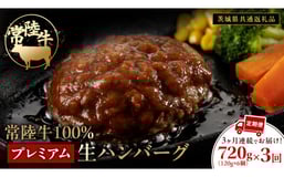 【3ケ月定期便】【茨城県共通返礼品】 黒毛和牛 常陸牛 100% 特製 プレミアム 生ハンバーグ 合計2160g(120g × 6個 ×3回 ) ハンバーグ 黒毛和牛 和牛 牛肉 肉 レトルト 冷凍 簡単 小分け 定期便