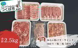 バラエティパック 2.5kg ( 牛 ・ 豚 ・ 鶏 ・ ウインナー ) 村下商事【 茨城県 つくば市 BBQ 牛肉 豚肉 鶏肉 ウインナー バラエティ 焼肉 焼き肉 バーベキュー ロース バラ 切り落とし 小分け 詰め合わせ 】