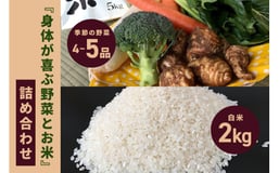 <白米 2kg>『身体が喜ぶ野菜とお米』詰め合わせ おまかせセット 茨城県産 コシヒカリ 米 お米 ご飯 ごはん 栽培期間中農薬不使用 季節の野菜 セット 微生物農法 EM農法 有機栽培 産地直送 新鮮 家庭用 潮来はぐくみのもり 茨城県 潮来市 (A03-006)