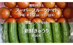 糖度9度以上 トマト 【 2025年収穫分 先行予約 】 スーパーフルーツトマト 中箱 約1.2kg(12~18玉)糖度9度以上 & 新鮮 きゅうり 約20本 野菜セット 2025年2月上旬発送開始 とまと トマト 胡瓜 キュウリ 野菜 サラダ [BC063sa]