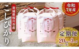 《 3ヶ月 定期便 》【生産者支援】令和7年産 茨城県桜川市産 こしひかり 20kg ( 5kg × 4袋 ) × 3回 茨城県産 桜川 米 お米 白米 コメ ごはん 精米 コシヒカリ 国産 限定 銘柄米 [SC067sa]