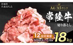 【 定期便 12ヶ月 連続 】 常陸牛 切り落とし 1.5kg ( 500g ×3袋 × 12回 ) (茨城県共通返礼品) 使いやすい パック A4 A5 ランク 黒毛和牛 国産黒毛和牛 和牛 国産 牛肉 牛 お肉 肉 ひたち牛 小分け [CD106sa]