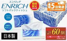 \12月末まで 寄附額改定/【最短5日発送】ENRICH エンリッチ ソフトパック ティッシュ 300枚(150組)5パック×12個入り 計60個【日本製】| 日用品 消耗品 まとめ買い 常備品 生活用品 ティッシュペーパー 60個