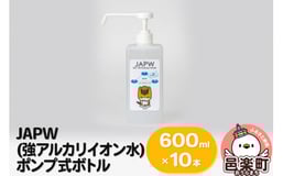 JAPW(強アルカリイオン水)ポンプ式ボトル 600ml×10本セット