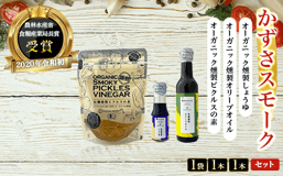 KAR004 オーガニック燻製しょうゆ1本・オーガニック燻製オリーブオイル1本・オーガニック燻製ピクルスの素1袋 セット<かずさスモーク> ふるさと納税 オリーブオイル しょうゆ 無添加 オーガニック 醤油 燻製