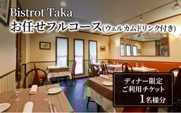 お食事券 ビストロ タカ ディナー限定 ウェルカムドリンク付きお任せフルコースご利用チケット フレンチ レストラン コース料理 東京都 文京区[№5338-0132]