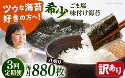 【全3回定期便】【訳あり】ごま塩味付け海苔 八切り80枚×11袋(全形110枚分)海苔 味付け 訳あり 国産 走水 海苔 味のり ノリ 横須賀【丸良水産】[AKAB174]