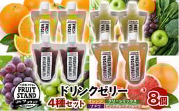 ドリンクゼリー 4種セット 計8個 ゼリー 飲む ぶどう ブドウ 葡萄オレンジ ピンクグレープフルーツ グリーンミックス パウチタイプ 持ち運び 果実 甘い 濃厚 季節 家庭用 ピクニック レジャー 送料無料 冷凍 八百屋コウタ 神奈川県 平塚市
