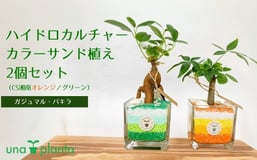 014-10ハイドロカルチャー・カラーサンド植え2個セット(CS湘南オレンジ/グリーン)ガジュマル・パキラ / 秦野 神奈川 観葉植物 無菌 無臭 顆粒状粘土 用土 セラミスグラニュー 植物 植え込 ハイドロカルチャー 水耕栽培 ミニ観葉