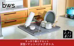 すっきり暮らすセット(深型+マット+ジャグボトル) 水切りかご 水切りマット ステンレス 食洗機対応 キッチン用品 bwsSELECTION [ビーワーススタイル] 燕三条製 省スペース 【021S080】