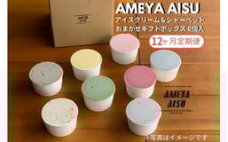 【定期便12ヶ月毎月お届け】AMEYA AISU 人気アイスクリーム&シャーベット 6個入 詰め合わせ 北海道産あずき使用 食べ比べセット ギフトセット 贈答 アイスクリームセット おまかせギフトボックス シャーベット ジェラート 青木飴屋 アメヤアイス 加茂市 定期便