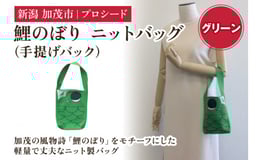鯉のぼり ニットバッグ(手提げバック)【グリーン】《タテ20×ヨコ15×マチ3.5(cm) 》 ニット バッグ 手提げ 手さげ 水洗い可能 丈夫で軽量なバッグ 加茂市 プロシード