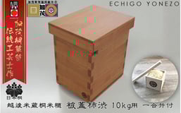 加茂製 日本桐米櫃 被蓋柿渋 (10kg用)《横幅240×全長305×高さ340×板厚15(mm)》無垢 伝統工芸士が手掛ける 米びつ 純国産桐 加茂市 堀敬商事株式会社
