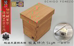加茂製 日本桐米櫃 被蓋柿渋 (5kg用)《横幅200×全長270×高さ270×板厚15(mm)》無垢 伝統工芸士が手掛ける 米びつ 純国産桐 加茂市 堀敬商事株式会社