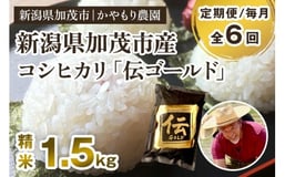 【令和7年産新米】【定期便6回毎月お届け】新潟産コシヒカリ「伝ゴールド」白米真空パック 精米1.5kg 《9月下旬から順次出荷》 南麻布の高級料亭で提供される極上米 かやもり農園