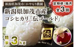 【令和7年産新米】【定期便3回隔月お届け】新潟産コシヒカリ「伝ゴールド」白米真空パック 精米3kg(1.5kg×2) 《9月下旬から順次出荷》 南麻布の高級料亭で提供される極上米 かやもり農園