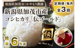 【令和7年産新米】【定期便3回毎月お届け】新潟産コシヒカリ「伝ゴールド」白米真空パック 精米 6kg(1.5kg×4)《9月下旬から順次出荷》 南麻布の高級料亭で提供される極上米 かやもり農園