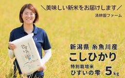 【令和6年産新米予約】 新潟県糸魚川産コシヒカリ 5kg『ひすいの雫』専門家お墨付き 特別栽培米 清耕園ファーム 農家直送 令和6年産 真空パック 鮮度長持ち 白米【お米 こめ 精米 ご飯 ライス 5キロ ふるさと納税米 こしひかり 2024 ギフト お弁当 おにぎり にも おすすめ!】