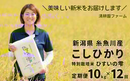 【令和6年産新米予約】新潟県糸魚川産コシヒカリ 10kg×12ヶ月『ひすいの雫』 計120㎏【定期便】特別栽培米 清耕園ファーム 真空パック 毎月お届け【米 お米 コメ ブランド米 ご飯 ライス ふるさと納税米 おにぎり 精米 食品 こしひかり 白米 12回 12か月 ギフト お弁当】