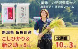 令和6年産新米予約【定期便】『新之助』『コシヒカリ』10kg×3回 計30kg (5kg×2袋) 美味しいお米の食べ比べ 清耕園ファーム 農家直送 ひすいの雫 新潟県産 糸魚川 2024年産 新米【米 白米 こしひかり しんのすけ ご飯 ライス ふるさと納税米 ブランド米 ギフト 精米 食品 毎月お届け 3ヶ月 3か月 お弁当 おにぎり にも最適です】