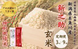 令和6年産新米予約【定期便】新之助 玄米 3kg×9ヶ月 計27kg 新潟県糸魚川産 特別栽培米 農家直送 100%根知谷産 米・食味鑑定士お墨付き【米 お米 コメ こめ ご飯 ライス ふるさと納税米 ブランド米 食品 人気 おすすめ ギフト 糸魚川市 減農薬 2024年産 シンノスケ しんのすけ 3キロ 先行予約 毎月お届け 9回 9か月】