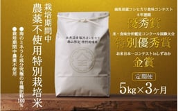 【定期便令和8年産新米予約】南魚沼食味コンクール4年連続優秀賞 栽培期間中農薬不使用特別栽培米5kg×3回 南魚沼塩沢産コシヒカリ【2026年10月中旬から1ヶ月以内に順次発送予定】