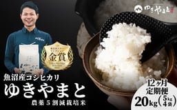 【令和8年産 コシヒカリ 先行予約】【12ヶ月定期便】魚沼産コシヒカリ「ゆきやまと」特別栽培米 20kg (5kg×4袋) ※節減対象農薬当地比5割減※東京米スターセレクション金賞受賞 | 新潟産コシヒカリ 新潟県産コシヒカリ 魚沼産こしひかり 米 お米 こしひかり 白米 精米 ブランド米 津南町 ゆきやまと農場