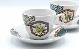 九谷焼 ペアコーヒーカップ 色絵桜小紋